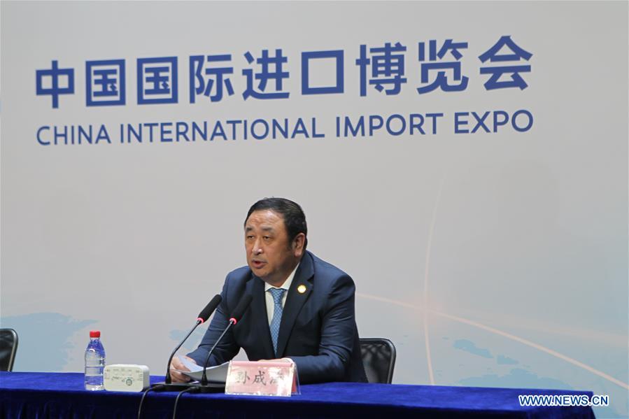 Sun Chenghai, deputy director of the China International Import Expo (CIIE) Bureau, speaks during a news briefing for the closing of the third CIIE in Shanghai, east China, Nov. 10, 2020. The third CIIE concluded here Tuesday, with deals reached for intended one-year purchases of goods and services totaling 72.62 billion U.S. dollars, up 2.1 percent from the last expo, official data showed. (Xinhua/Wang Xiang)