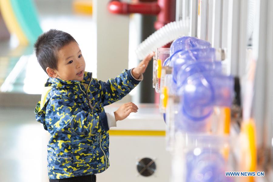 A kid plays at Nanjing Science and Technology Museum during the International Week of Science and Peace in Nanjing, east China's Jiangsu Province, Nov. 11, 2020. (Photo by Zhang Meng/Xinhua)