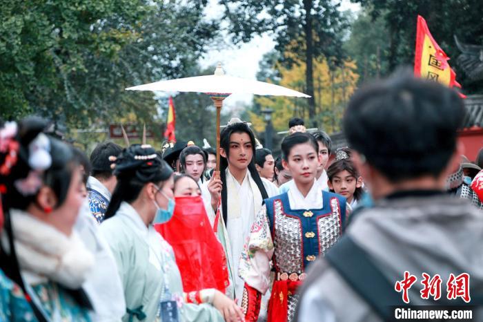 Four groups of young enthusiasts wearing Hanfu left from four different landmarks of Chengdu on Nov. 22, and arrived at Wenshufang folk culture street on the same afternoon. All the Hanfu enthusiasts, including some foreigners, then paraded down the street to celebrate the festival and show the beauty of Hanfu.