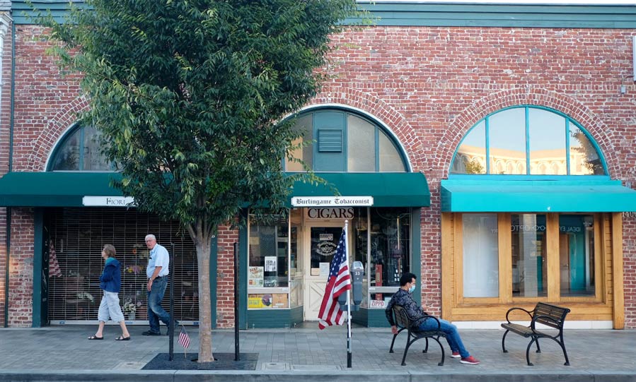 People are seen by the road in Burlingame, California, the United States, July 4, 2020. (Photo by Li Jianguo/Xinhua)