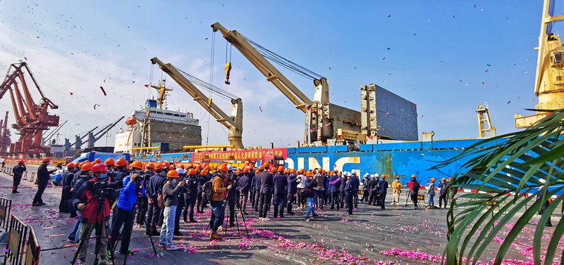 Over 8,000 tons of 50-meter high-speed rails were sent to Indonesia through Fangchenggang Port in Southern China’s Guangxi Zhuang Autonomous Region on Nov.28. (China Railway Materials)