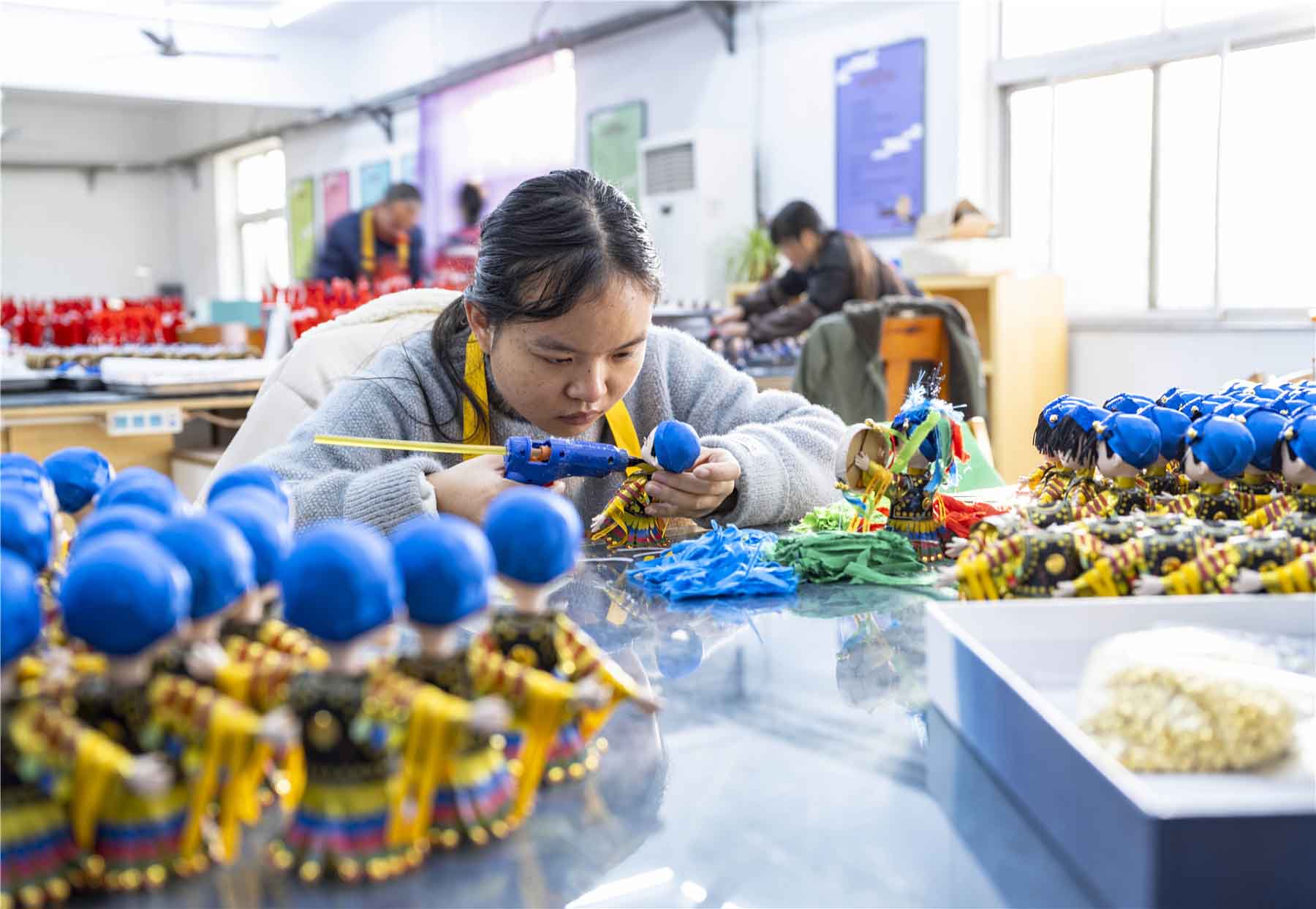 On November 29, the craftsmen of Beijing Tang Ren Fang were making Beijing silk figurines.