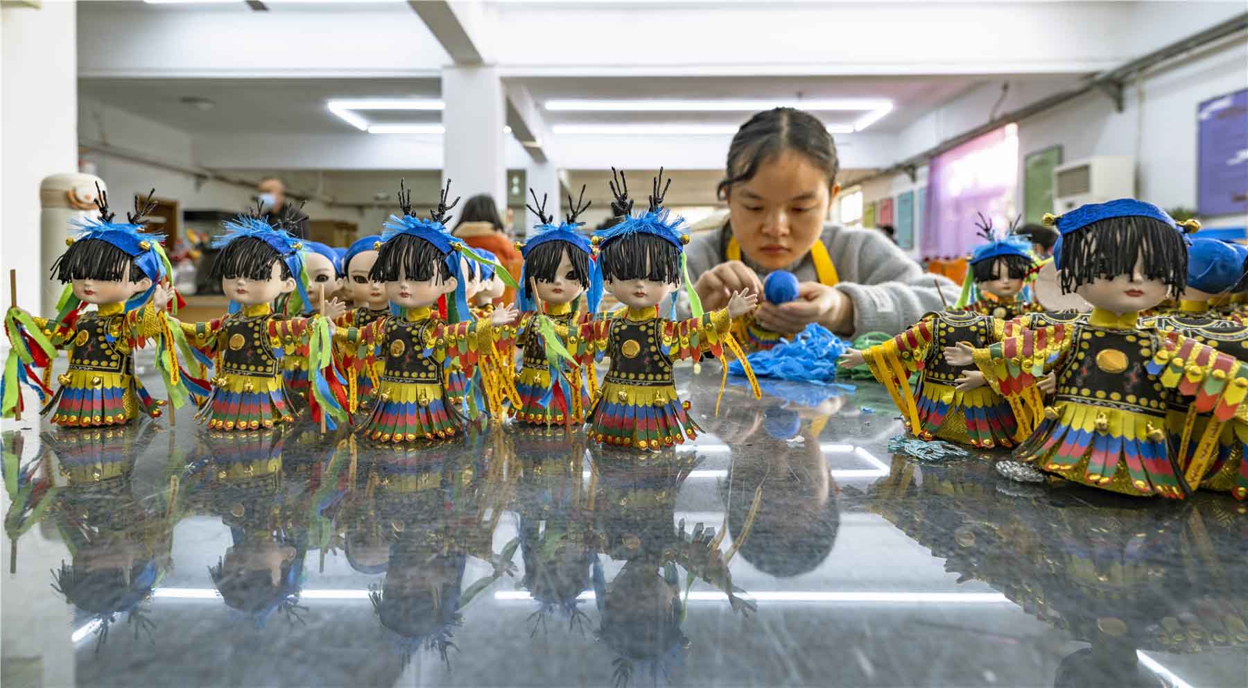 Beijing silk figurines mainly portray heroines in folktales and historical novels.
