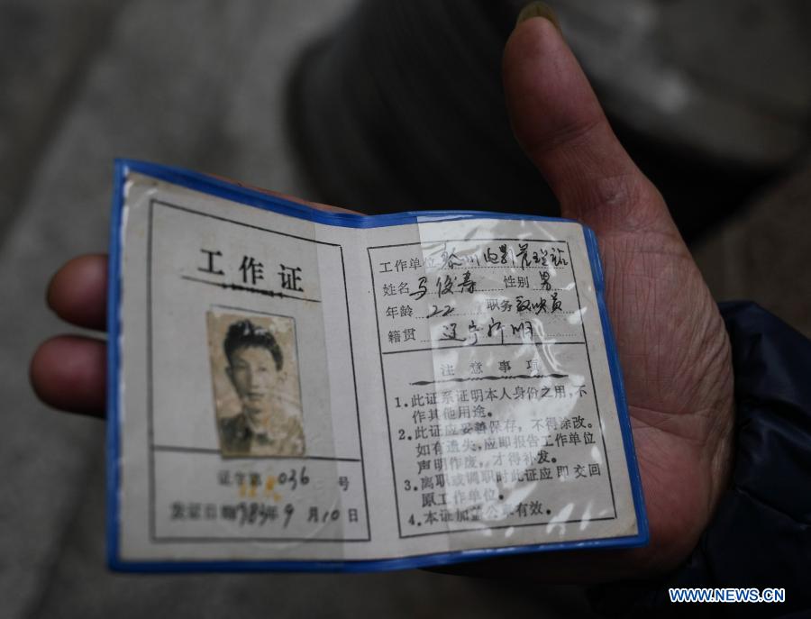 Ma Junshou shows his work certificate in Lichuan County of east China's Jiangxi Province, Dec. 2, 2020. A film projection team in Lichuan County has provided open-air film projection service for people living in villages across the county, even those in remote mountainous areas. Ma Junshou, 59, head of the team, has visited different villages to project over 600 films for local people each year since 1983. (Xinhua/Hu Chenhuan)