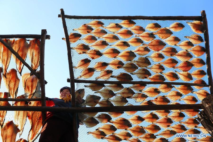 Fishermen dry fish in Duoshi Village of Qingdao, E China (2)