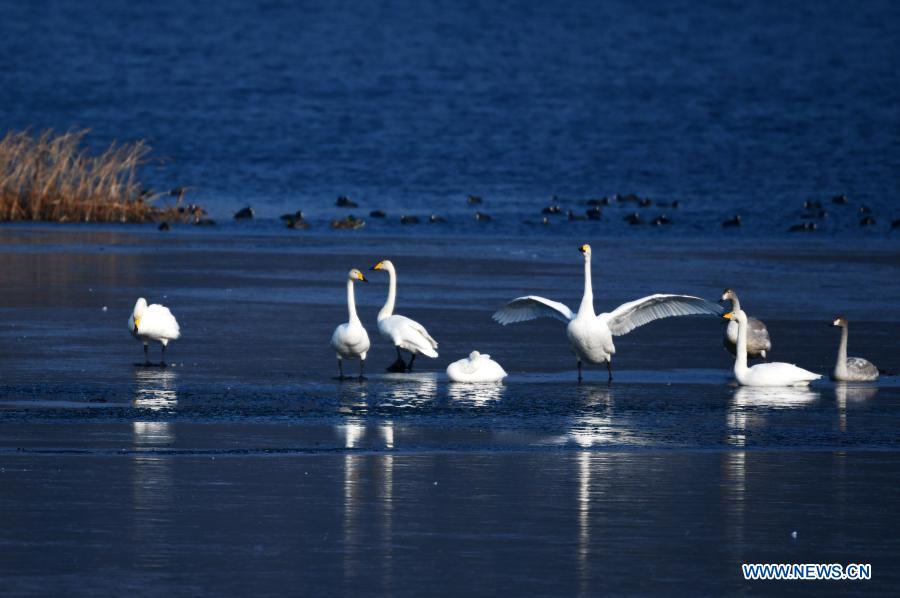 Swans rest at Huairou Reservoir in Beijing, capital of China, Dec. 6, 2020. (Xinhua/Yang Wenbin)