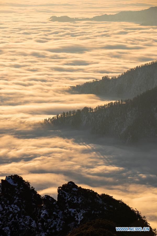 Photo taken on Dec. 10, 2020 shows clouds seen from the top of the Guangtou Mountain in Tianquan County, southwest China's Sichuan Province. (Xinhua/Jiang Hongjing)
