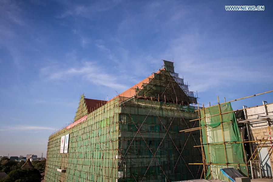 Photo taken on Dec. 23, 2020 shows the construction site of China-aided Mahosot General Hospital in Vientiane, Laos. In the Lao capital Vientiane, China-aided Mahosot General Hospital is under construction by Chinese and Lao engineers, with a construction area of approximately 54,000 square meters. The hospital will become the largest and most advanced hospital in the country upon completion, which includes the expansion of the existing Mahosot Hospital and the building of new medical facilities. (Photo by Kaikeo Saiyasane/Xinhua)