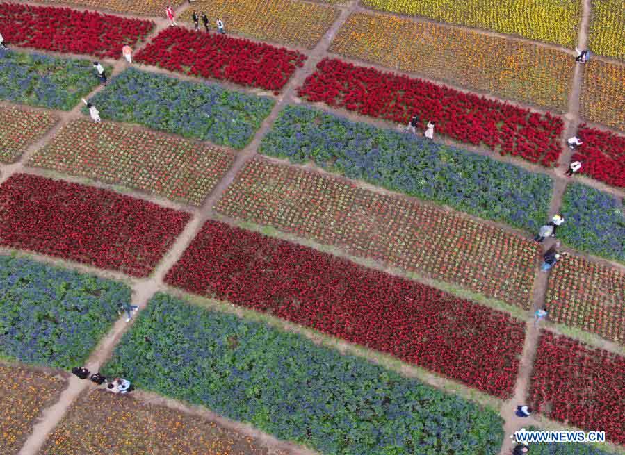 Aerial photo taken on Dec. 26, 2020 shows tourists enjoying flowers at the Shimen National Forest Park in Guangzhou, south China's Guangdong Province. (Xinhua/Deng Hua)