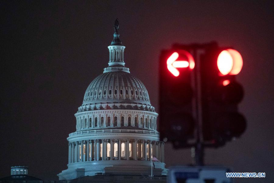 Photo taken on Jan. 1, 2021 shows the U.S. Capitol Hill building in Washington, D.C., the United States. The U.S. Congress has voted to override President Donald Trump's veto of a 740.5-billion-U.S.-dollar defense policy bill. The Republican-led Senate voted 81 to 13 in a rare New Year's Day session on Friday to join the House, controlled by Democrats, in overriding Trump's veto, making the National Defense Authorization Act for fiscal year 2021 a law. (Xinhua/Liu Jie)