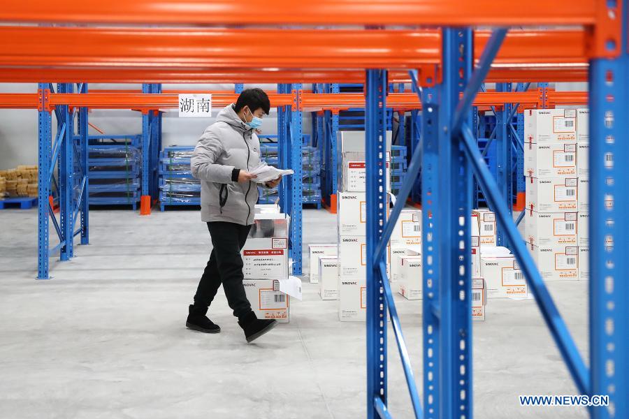 A staff member works at a COVID-19 vaccine refrigeration plant of Sinovac Research and Development Co., Ltd. in Beijing, capital of China, Jan. 6, 2021. The COVID-19 vaccine inoculation among specific groups of people with higher infection risks has started across China recently. Vaccine developing companies including Sinovac Research and Development Co., Ltd. are busy producing COVID-19 vaccines to ensure the inoculation being conducted orderly. (Xinhua/Zhang Yuwei)