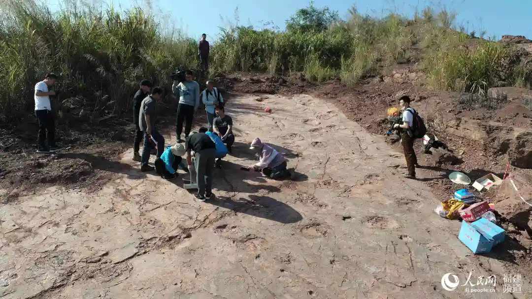 A large group of Late Cretaceous dinosaur footprints have been found in Licheng Town of Shanghang County, Longyan City in southeast China's Fujian Province on January 12, 2020.