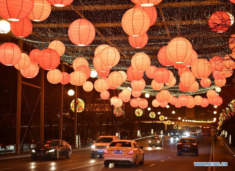 Photo taken on Jan. 14, 2021 shows light decorations for the upcoming Spring Festival in Qujiang New Area in Xi'an, northwest China's Shaanxi Province. The Spring Festival falls on Feb. 12 this year. (Xinhua/Shao Rui)