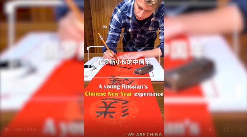 He also tried drawing Spring Festival couplets and hanging up red lanterns.