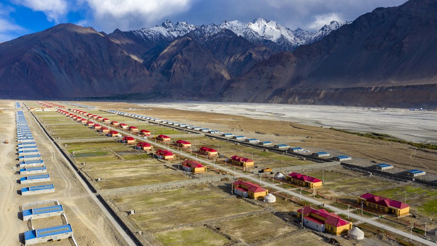 Aerial photo taken on June 6, 2020 shows a resettlement community for relocated residents of Rasekam Village in Taxkorgan Tajik Autonomous County, northwest China's Xinjiang Uygur Autonomous Region. (Xinhua/Hu Huhu)