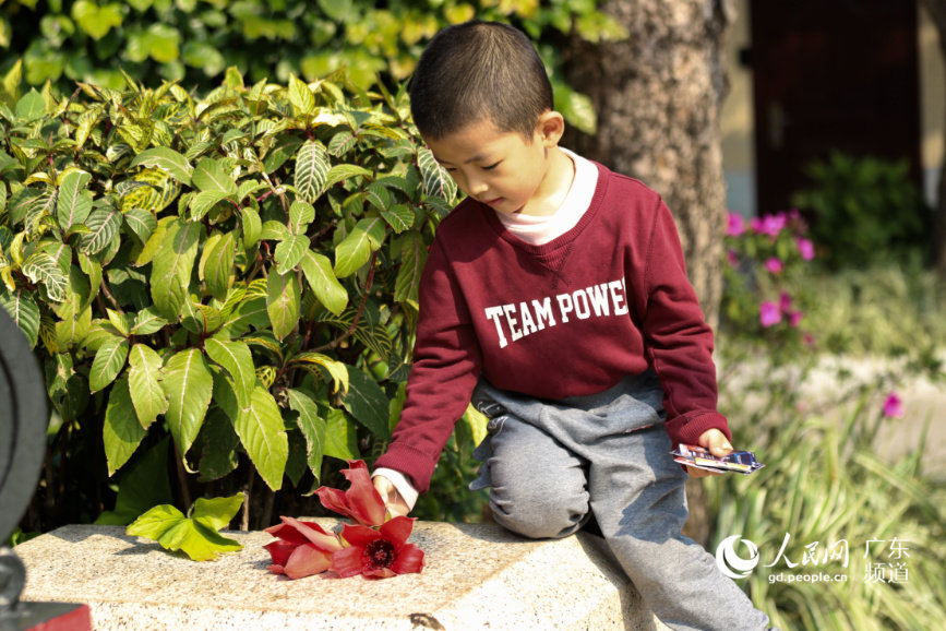 A child collects Kapok flowers at Dr. Sun Yat-sen's Memorial Hall in Guangzhou, southern China’s Guangdong Province. The Kapok flower, the city flower of Guangzhou, southern China’s Guangdong Province, has blossomed across the city due to rising temperatures in early spring. (People's Daily Online/Chen Wenxia)
