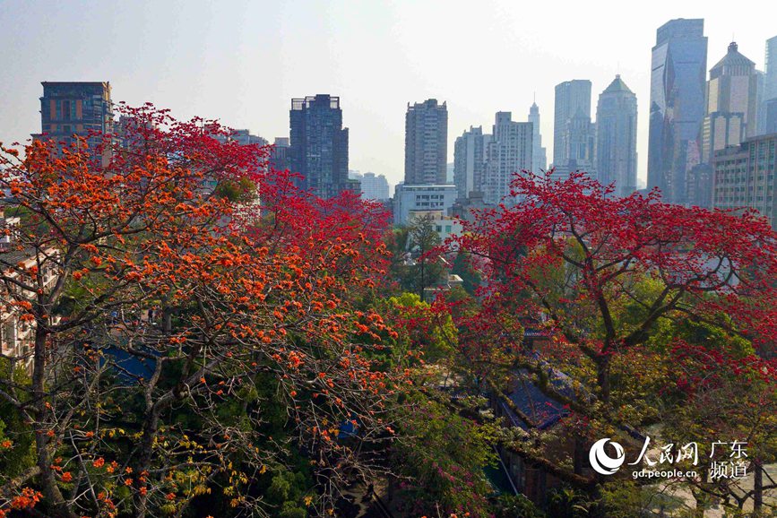 The Kapok flower, the city flower of Guangzhou, southern China’s Guangdong Province, has blossomed across the city due to rising temperatures in early spring. Dr. Sun Yat-sen's Memorial Hall, with its many brilliant red blossoms covering the Kapok trees, has attracted hordes of visitors. (People's Daily Online/Chen Wenxia)