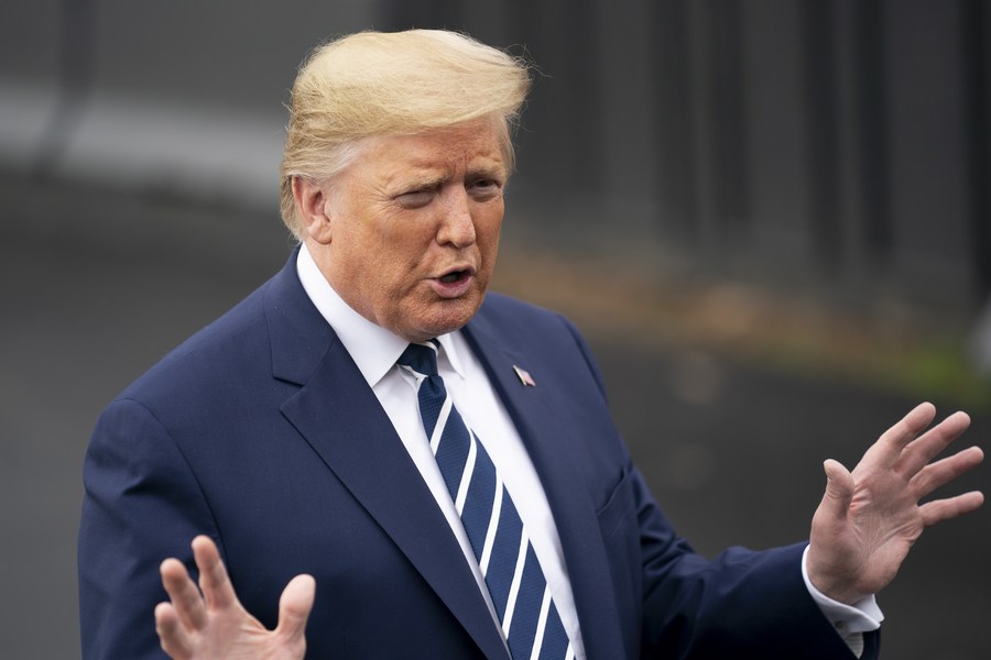 U.S. President Donald Trump speaks to reporters before leaving the White House in Washington D.C., the United States, on March 3, 2020. (Xinhua/Liu Jie)
