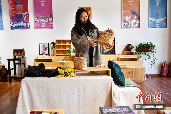 Yang Ding, a post-90s PhD graduate of the Yi ethnic group from Liangshan Yi Autonomous Prefecture, showcases a product she designed. Founder of a woodware brand, Yang is committed to passing on and innovating traditional Yi culture. Photo/Chinanews.com