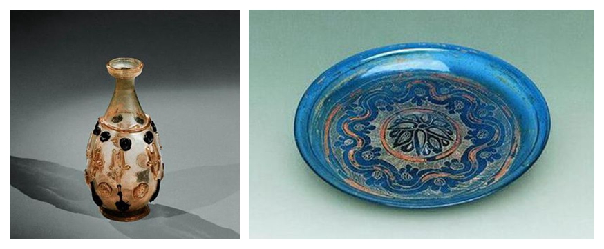 Two pieces from the 20 exquisite East Roman and Islamic relics brought to light in 1987 from the underground chamber of Famen Temple in China's Shaanxi Province. /Xinhua
