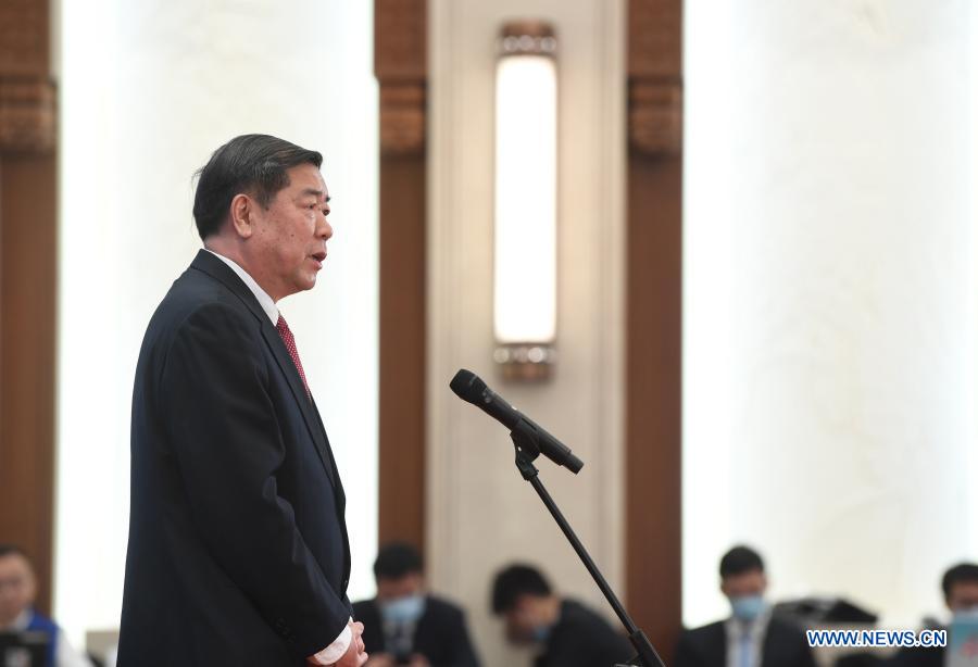 He Lifeng, head of the National Development and Reform Commission, gives an interview via video link after the opening meeting of the fourth session of the 13th National People's Congress (NPC) in Beijing, capital of China, March 5, 2021. (Xinhua/Jin Liangkuai)