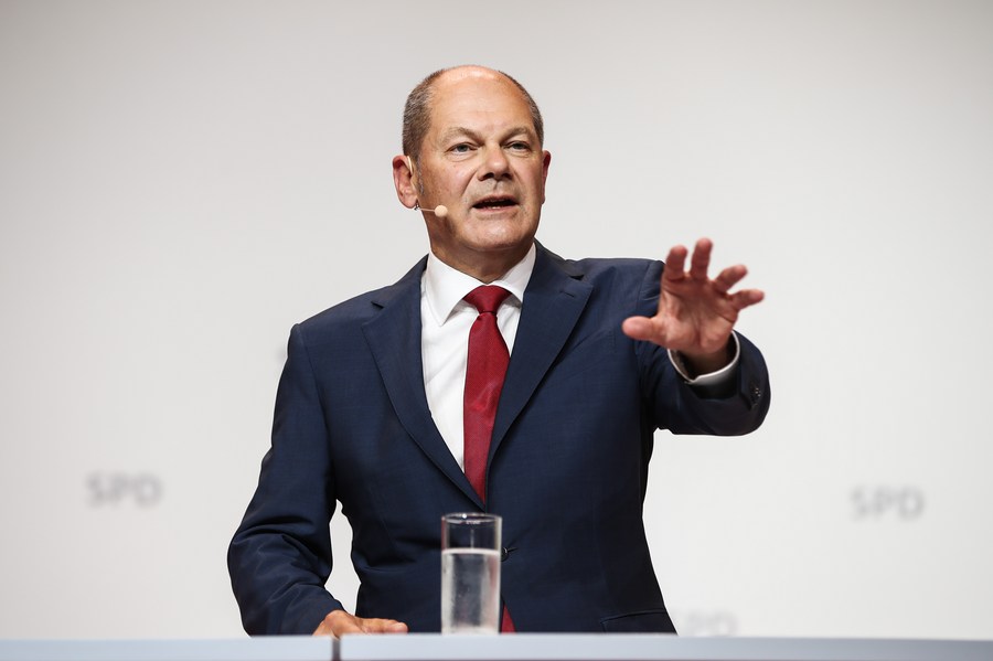 German Vice Chancellor and Finance Minister Olaf Scholz attends a press conference in Berlin, capital of Germany, Aug. 10, 2020. German Social Democratic Party (SPD) proposed Olaf Scholz as candidate for Chancellor at the upcoming election in 2021. (Xinhua/Shan Yuqi)