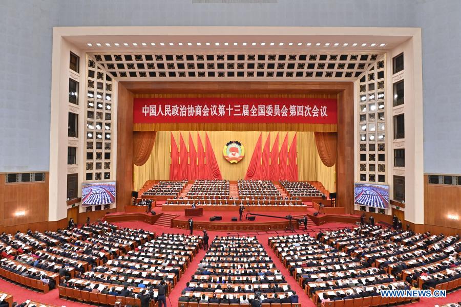 The second plenary meeting of the fourth session of the 13th National Committee of the Chinese People's Political Consultative Conference (CPPCC) is held at the Great Hall of the People in Beijing, capital of China, March 7, 2021. (Xinhua/Li Xin)