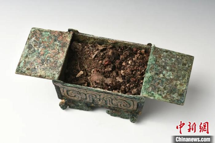 The red concoction was made from animal fat, vegetable essential oil and cinnabar, according to scientific analysis results released on March 10. Meanwhile, calcite and aragonite, the raw materials of skin-whitening cosmetics, were also found in the residues of another bronze box.