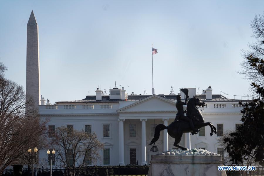 Photo taken on March 11, 2021 shows the White House in Washington, D.C., the United States. U.S. President Joe Biden on Thursday signed the 1.9-trillion-U.S.-dollar COVID-19 relief bill into law, after weeks of partisan fighting in the Congress, marking the first legislative victory for Biden since he took office. (Xinhua/Liu Jie)