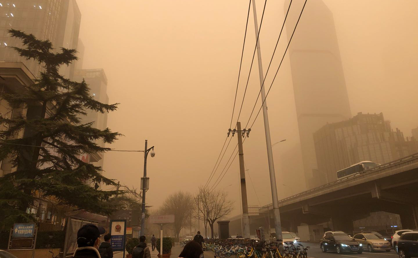 The sandstorm originated in Mongolia and gradually moved southward with air currents, the Beijing Municipal Ecological and Environmental Monitoring Center said.