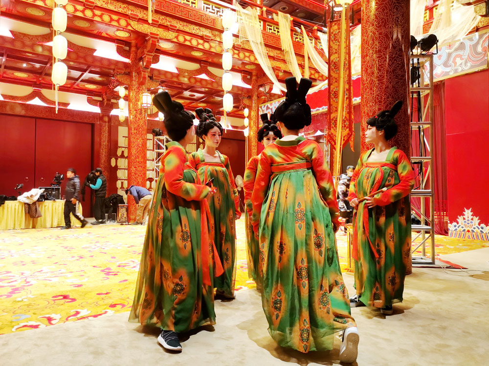 Performers of Night Banquet in Tang Dynasty Palace prepare for a rehearsal in Luoyang, Henan province. ZHANG YIXI/FOR CHINA DAILY