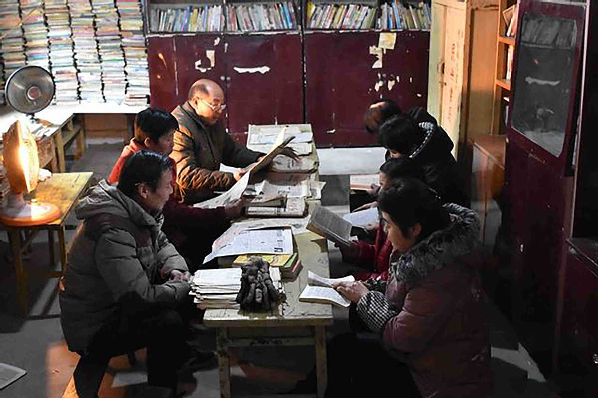 Residents read at Du Dejian's library. [Photo provided to chinadaily.com.cn]