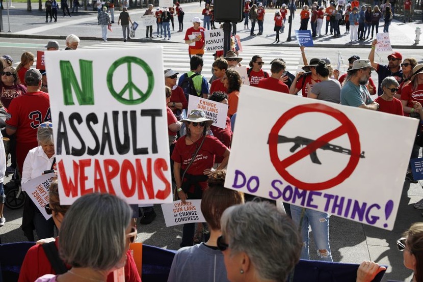 People take part in a rally held in downtown San Francisco urging the federal government and lawmakers in Congress to take action to control gun-related crimes. (Photo by Li Jianguo/Xinhua)