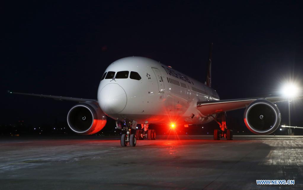 Photo taken on March 25, 2021 shows the plane loaded with CoronaVac vaccine produced by Chinese company Sinovac Biotech arrives at Kiev Boryspil airport in Kiev, Ukraine. A plane with the first batch of CoronaVac vaccine produced by Chinese company Sinovac Biotech arrived in Ukraine on Thursday night amid the rapid surge of COVID-19 infections in the country. (Photo by Sergey Starostenko/Xinhua)
