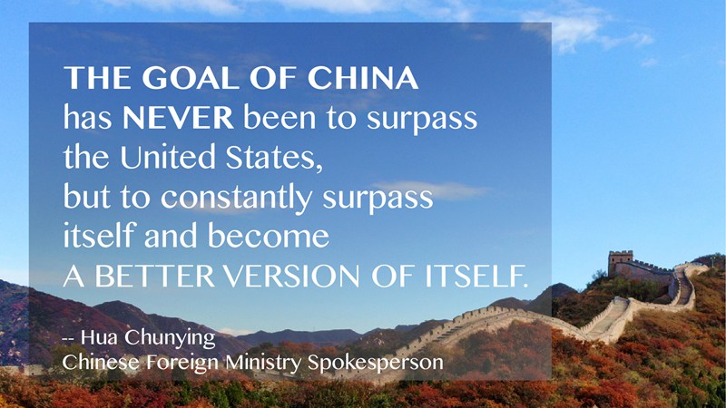 The goal of China has never been to surpass the United States, but to constantly surpass itself and become a better version of itself, a foreign ministry spokesperson said Friday.
