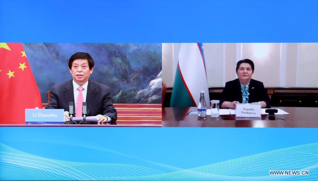 BEIJING, March 27 (Xinhua) -- China's top legislator Li Zhanshu held talks on Friday with Uzbekistan's Senate chairperson Tanzila Narbayeva via video link. The two sides agreed to enhance exchanges and cooperation between their two legislative bodies.