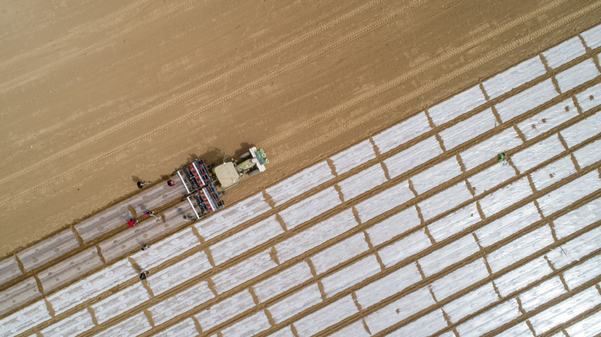 An autonomous crop-sowing vehicle plants cotton seeds on Friday in a high-yield demonstration field in Kuqa county in the Xinjiang Uygur autonomous region. [Photo by YUAN HUANHUAN/FOR CHINA DAILY]