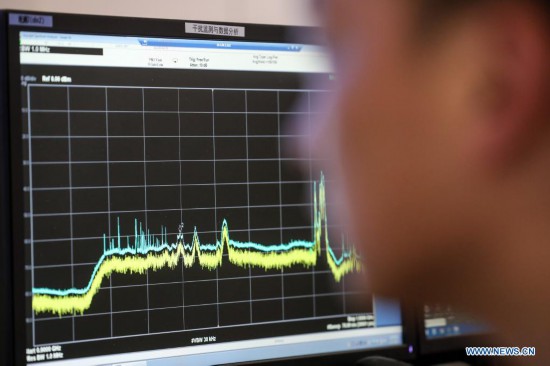 A staff member works at the control room of China's Five-hundred-meter Aperture Spherical radio Telescope (FAST) in southwest China's Guizhou Province, March 27, 2021. FAST has identified over 300 pulsars so far. Located in a naturally deep and round karst depression in southwest China's Guizhou Province, it officially began operating on Jan. 11, 2020. (Xinhua/Ou Dongqu)