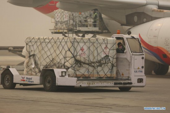 China-donated COVID-19 vaccines arrive at Tribhuvan International Airport in Kathmandu, Nepal, on March 29, 2021. A chartered flight of the Nepal Airlines, the national flag carrier, brought back the vaccines donated by China on Monday, giving a major boost for Nepal to continue its vaccination campaign against the pandemic. (Xinhua/Zhou Shengping)