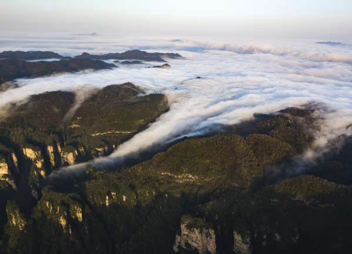 The park in Zhangjiajie, Hunan province, is a world natural heritage site, a global geopark and China's first national forest park. [Photo by Zhou Jianxin/for chinadaily.com.cn]