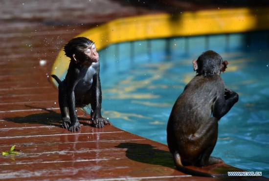 A macaque shakes water off at Nanwan Monkey Islet in Lingshui County, south China's Hainan Province, April 4, 2021. Nanwan Monkey Islet is a nature reserve with over 2500 macaques living here. (Xinhua/Guo Cheng)