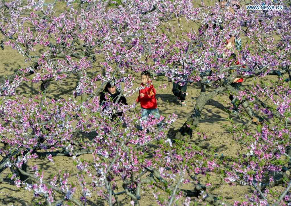 Tourists enjoy flowers at peach garden in Hebei (2)