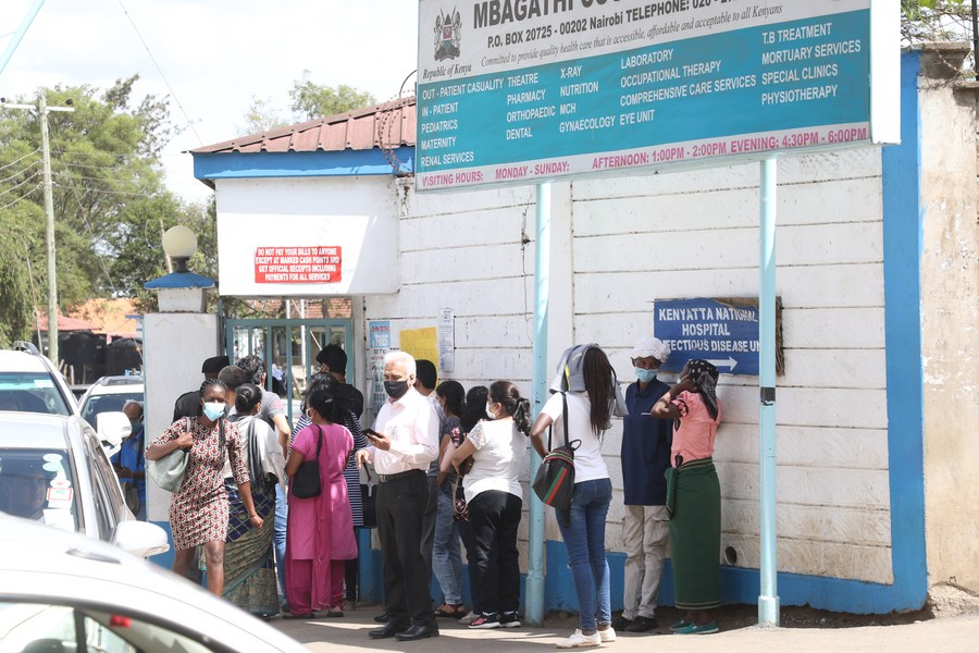 People visit Mbagathi County Hospital for COVID-19 vaccination in Nairobi, capital of Kenya, March 22, 2021. (Xinhua/Allan Mutiso)