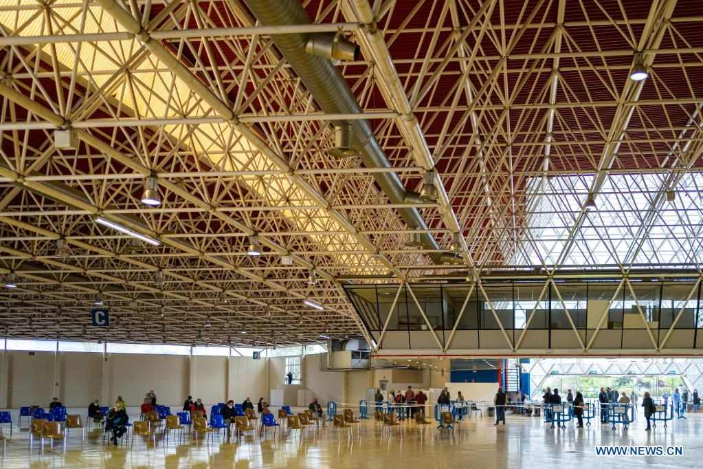 Photo taken on April 7, 2021 shows a vaccination site in Cornella, Spain. The European Medicines Agency (EMA) confirmed on Wednesday that the occurrence of blood clots with low blood platelets are strongly associated with the administration of AstraZeneca COVID-19 vaccine, but should be still listed as very rare side effects. (Photo by Joan Gosa/Xinhua)