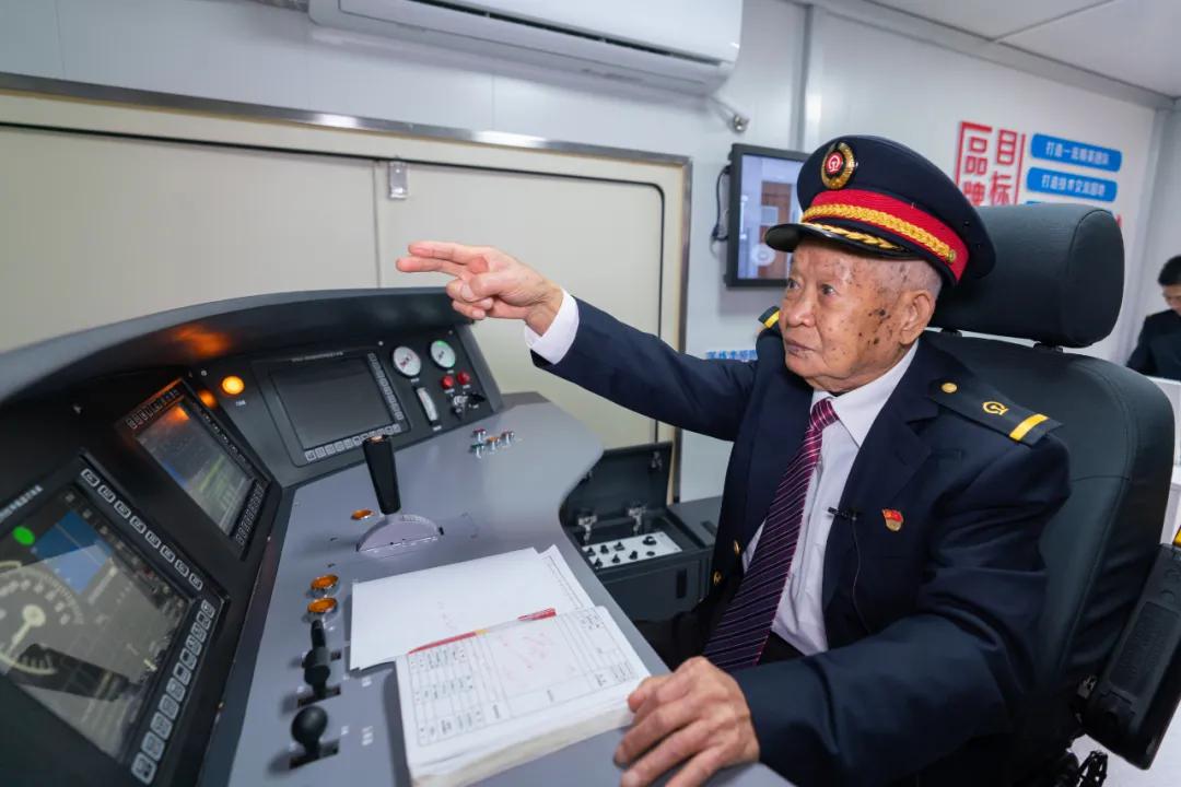 For his 100th birthday, Ren Zhongde, who was one of the first generation of train drivers in China, was treated to a ride in a simulation cockpit of a Fuxing bullet train, making his birthday dream come true.
