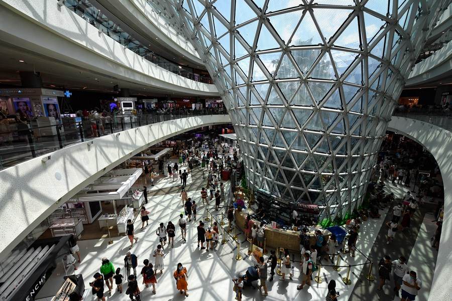 Tourists shop at a duty-free shopping mall in Sanya City, south China's Hainan Province, Oct. 5, 2020. (Xinhua/Guo Cheng)