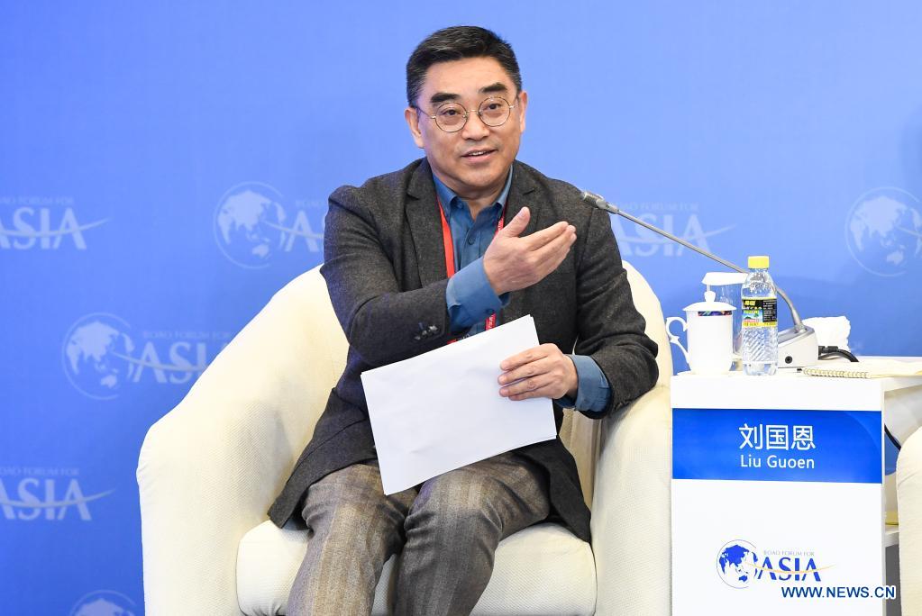 Liu Guoen, director of the China Center for Health Economic Research of Peking University, presides over a session titled Joint-Construction of the "Silk Road of Health" during the Boao Forum for Asia Annual Conference in Boao, south China's Hainan Province, April 18, 2021. (Xinhua/Yang Guanyu)
