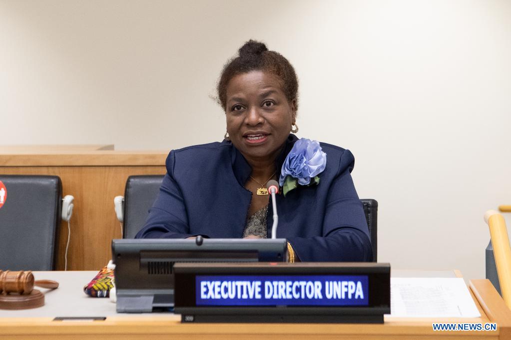 Natalia Kanem, executive director of the United Nations Population Fund, opens the 54th session of the UN Commission on Population and Development at the UN headquarters in New York, on April 19, 2021. The United Nations has called for urgent action to feed the world's growing population healthily, equitably and sustainably, according to messages and statistics revealed Monday from this year's meeting of the UN Commission on Population and Development. (Eskinder Debebe/UN Photo/Handout via Xinhua)