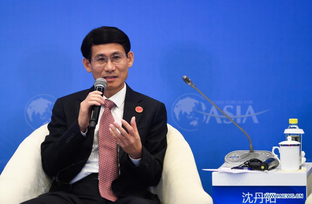 Shen Danyang, Executive Vice-Governor of Hainan Province, speaks at a sub-forum themed "Dual Circulation - China's New Growth Paradigm" during Boao Forum for Asia (BFA) annual conference in Boao, south China's Hainan Province, April 21, 2021. A sub-forum themed "Dual Circulation - China's New Growth Paradigm" was held in Boao on Wednesday. (Xinhua/Yang Guanyu)
