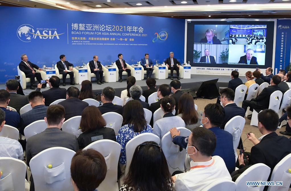 Guests attend a sub-forum themed "Dual Circulation - China's New Growth Paradigm" during Boao Forum for Asia (BFA) annual conference in Boao, south China's Hainan Province, April 21, 2021. A sub-forum themed "Dual Circulation - China's New Growth Paradigm" was held in Boao on Wednesday. (Xinhua/Li He)